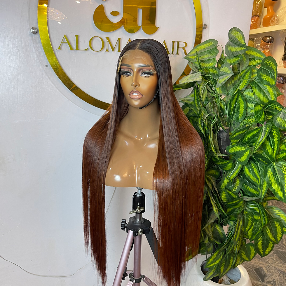 30" Chestnut Dark Root Bonestraight +7x7HD (300g)